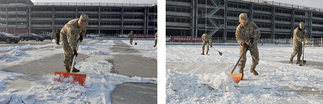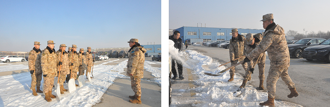 部队战士在相关领导的带领下于12月25日下午来到球速(中国)物流公司,经过工作人员对目前困难的详细描述,部队战士合理规划、严密部署、分工分组合作,有除冰的,有铲雪的,在球速(中国)物流工作人员和部队战士的共同努力下,用一下午时间高标准、高效率共同完成扫雪铲冰的工作。